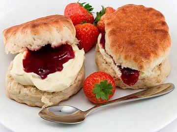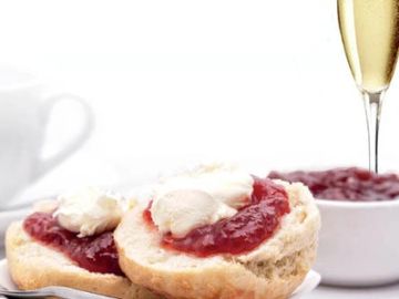 2 Scones per person served with a 200cl. bottle of Prosecco, fresh strawberries, jam and clotted cream